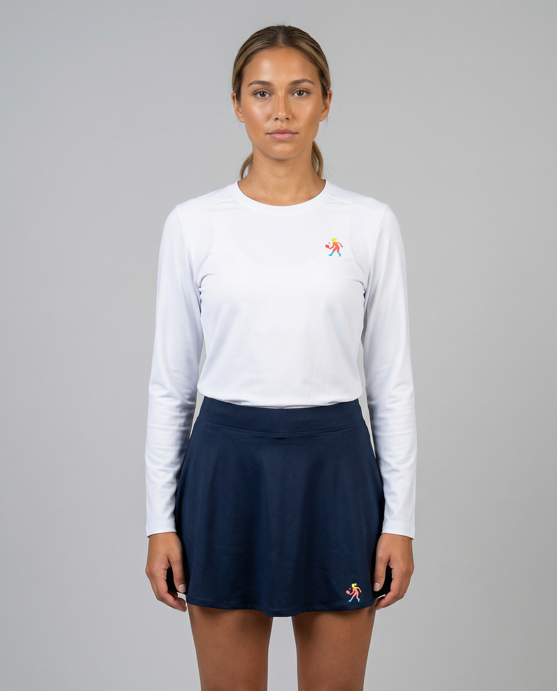 The après-pickle Flared Pickleball Skirt brings together movement, style, and performance in one effortless design. Made from a lightweight, stretch performance blend, it features a flowy pleated silhouette that moves beautifully on the court. A built-in short provides coverage and comfort, while the secure pocket is perfectly sized to hold your pickleball. With UPF40 sun protection and moisture-wicking fabric, this skirt keeps you cool, confident, and ready for every match—and every après-pickle moment.