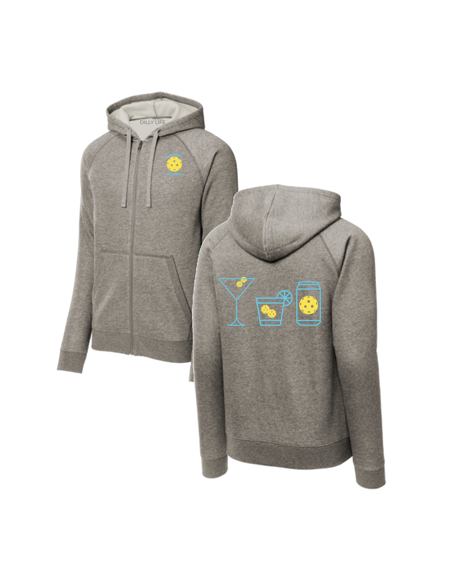 Stay cozy and stylish with our Light Gray Social Club Spritz Full Zip Hoodie, featuring three signature cocktails on the back for a touch of personality. Crafted from a luxurious cotton-blend fleece, this full-zip hoodie ensures ultimate comfort and warmth for your everyday wear. The ultrasoft fabric provides a premium feel while the blend of 60% cotton and 40% performance polyester fleece ensures durability and easy care. Elevate your wardrobe with this versatile hoodie that seamlessly combines comfort and style, making it the perfect choice for any occasion.