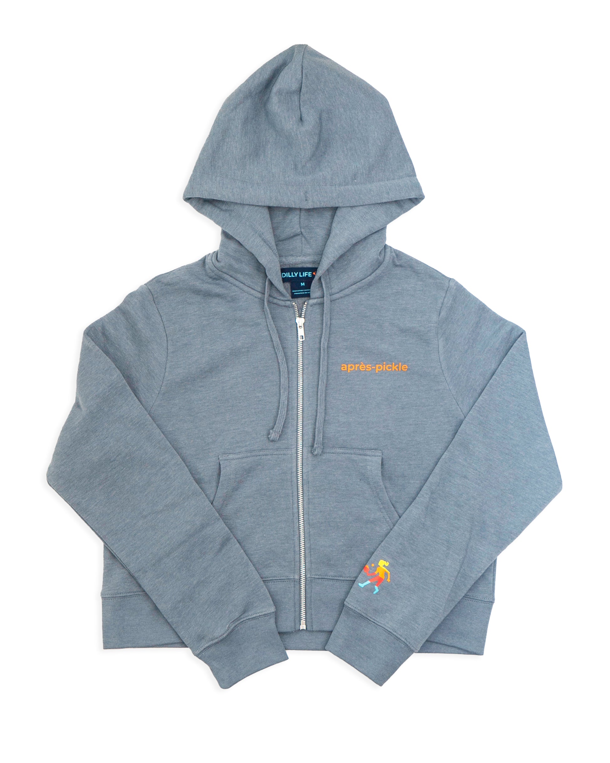 Embrace the après-pickle lifestyle with the DILLY LIFE après-pickle crop full zip. This style is perfect to throw on for post match fun. This is the first style to launch with our new female player logo. This female player was specifically designed based on customer feedback. We are proud to have it launched alongside our new full zip. This style is designed in a slightly cropped length.