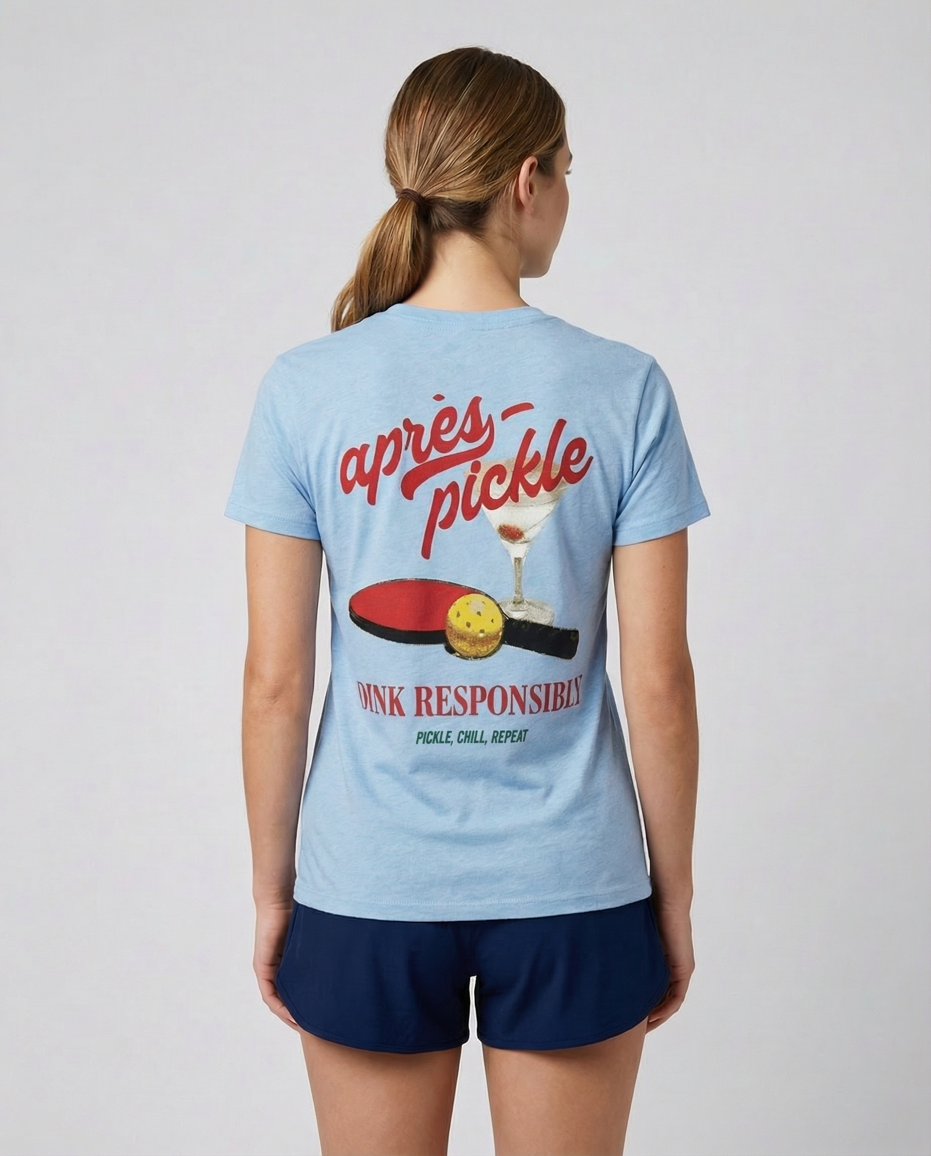 Show your pickleball spirit in the après-pickle Women’s Dink Responsibly Tee. Crafted from a soft, breathable cotton-blend fabric, this lightweight tee delivers all-day comfort with a flattering, feminine fit. The playful “Dink Responsibly” graphic adds a touch of fun on and off the court, making it a perfect pick for casual play, post-match hangs, or everyday wear.